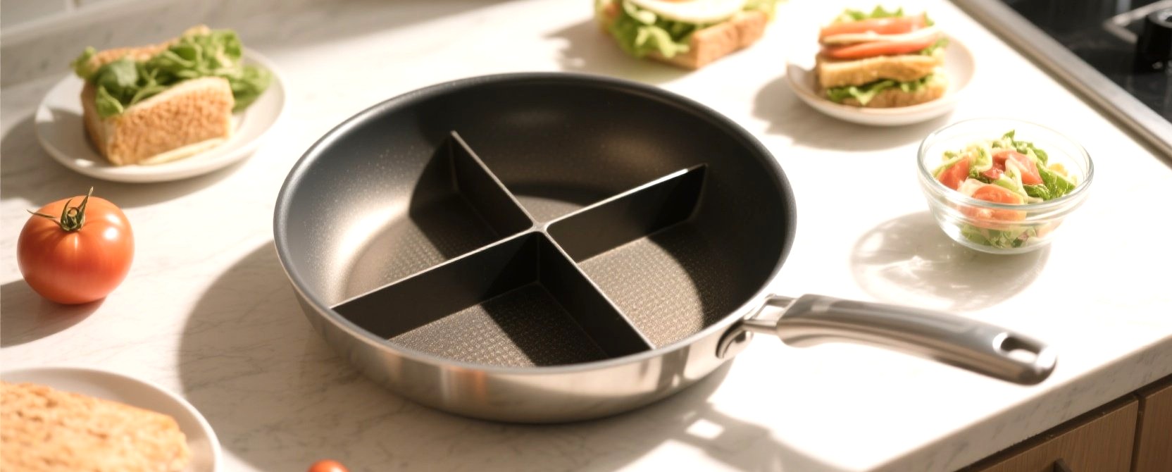 仕切り付きフライパンを導入して、忙しい朝の時間に「ゆとり」を作ってみませんか?洗い物が1つで済む快感、ぜひ体験してみてください!✨