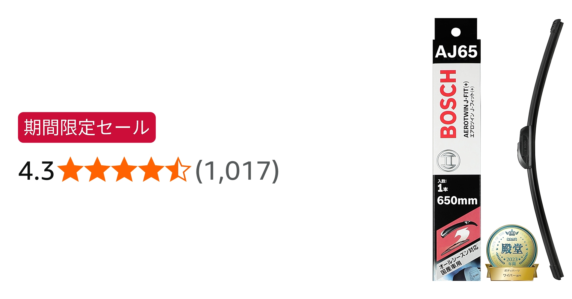 セール: BOSCH(ボッシュ) ワイパー ブレード エアロツイン J-フィット 650mm AJ65 オールシーズン対応 国産車用